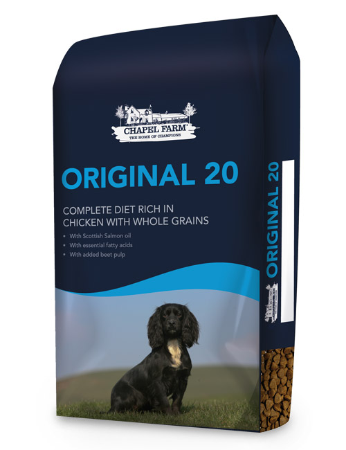 The Chapel Farm Original 20 is an all-round totally balanced diet that is suitable for feeding all breeds of working or companion dog. This is the food we recommend using during rest periods when the dogs are not working or training as hard which we have been feeding at the Buccleuch Gundog Kennels for the last five years. We recommend this variety of the range for feeding all athletic types of dogs, including gundogs, working and pastoral breeds.